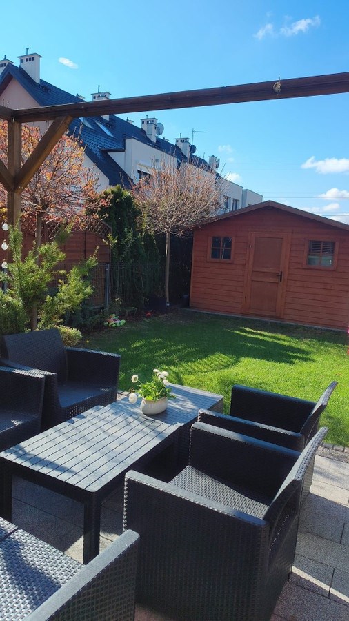 Oferuje na sprzedaż elegancki, nowoczesny dom w zabudowie bliźniaczej o powierzchni 112 m², położony w sercu Nowej Woli kolo Piaseczna — w doskonałej lokalizacji, łączącej spokój kameralnej zabudowy z szybkim i wygodnym dojazdem do Warszawy. To propozycja idealna dla rodzin z dziećmi, osób pracujących w Warszawie oraz wszystkich, którzy szukają komfortowego domu z prywatnym ogrodem, funkcjonalnym układem i dostępem do pełnej infrastruktury codziennego życia. Nieruchomość została wybudowana w 2016 roku. Po wejściu do domu znajduje się wygodny wiatrołap z pojemną zabudowaną szafą oraz praktycznym schowkiem z regałem na buty. Strefę dzienną tworzy przestronny, komfortowy salon z jadalnią oraz otwarta kuchnia. Na parterze znajduje się również łazienka z prysznicem oraz zabudowa mieszcząca pralko-suszarkę i wielofunkcyjny piec Viessmann. W kuchni, łazience oraz wiatrołapie zastosowano ogrzewanie podłogowe, które podnosi komfort użytkowania domu. Na piętro prowadzą indywidualnie zaprojektowane, podświetlane schody dębowe, które stanowią jeden z wyjątkowych elementów wykończenia wnętrza. Na tej kondygnacji znajdują się dwa ustawne pokoje, osobna duża garderoba, która dzięki dużemu oknu doskonale sprawdzi się także jako gabinet do pracy zdalnej, oraz przestronna łazienka z elegancką zabudową i dużą szafą na pościel, ręczniki oraz inne domowe wyposażenie. Na poddasze prowadzą kolejne piękne, dębowe schody wykonane według indywidualnego projektu. Poddasze pełni funkcję wyjątkowej, prywatnej strefy właścicieli. Znajduje się tu sypialnia z zabudowaną garderobą, wygodna przestrzeń do pracy zdalnej przy dużym oknie, liczne schowki oraz klimatyczna część relaksu. To idealne miejsce na odpoczynek, wyciszenie i stworzenie własnej, intymnej przestrzeni domowej. Jednym z największych atutów domu jest duży taras wykonany z wysokiej jakości płyt betonowo-kamiennych. Taras został wyposażony w pergolę oraz dużą, elektrycznie rozkładaną markizę, dzięki czemu stanowi komfortowe miejsce wypoczynku przez większą część roku. Ogród został zaprojektowany jako możliwie bezobsługowy i zimozielony, co pozwala cieszyć się estetyczną przestrzenią bez konieczności czasochłonnej pielęgnacji. Na działce znajduje się również pojemny, starannie wykonany domek ogrodowy, idealny do przechowywania rowerów, mebli ogrodowych, grilla i innych akcesoriów. Przed domem znajdują się 2 naziemne miejsca postojowe oraz dodatkowa przestrzeń umożliwiająca zaparkowanie 3. pojazdu. Ulica, podjazd i parking zostały wyłożone kostką. Nowa Wola to dynamicznie rozwijająca się miejscowość tuż pod Warszawą, ceniona przez rodziny i osoby poszukujące spokoju bez rezygnowania z miejskich udogodnień. W najbliższej okolicy znajdują się: Ogromnym atutem nieruchomości jest bardzo dobra komunikacja z Warszawą. Stacja PKP Nowa Iwiczna znajduje się w odległości około 800 m, co umożliwia szybki i wygodny dojazd do stolicy pociągami SKM oraz KM. Częstotliwość połączeń zapewnia komfort codziennych dojazdów i jest porównywalna z miejskim rytmem komunikacji. To nieruchomość dla osób, które szukają nowoczesnego, komfortowego domu na kameralnym, zamkniętym osiedlu. Idealna dla rodziny, pary pracującej zdalnie lub osób ceniących prywatną przestrzeń, ogród, wygodę oraz bliskość Warszawy. Dom łączy w sobie funkcjonalność, elegancję i przytulny charakter. Zapewnia dostęp do pełnej infrastruktury, a jednocześnie pozwala cieszyć się spokojem, zielenią, przestrzenią i sąsiedztwem natury. Zapraszamy do kontaktu oraz umówienia prezentacji.Nowoczesny dom z ogrodem na zamkniętym osiedlu