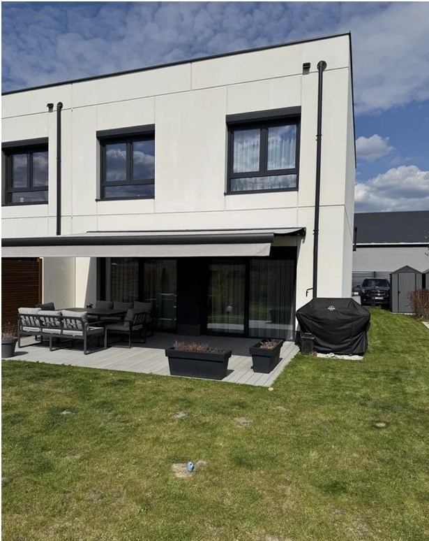 Do dyspozycji mieszkańców jest również przestronny taras z deski kompozytowej z automatyczną markizą, który zapewnia komfort nawet w słoneczne dni.