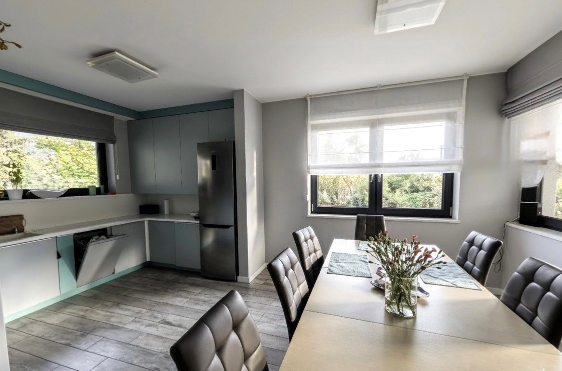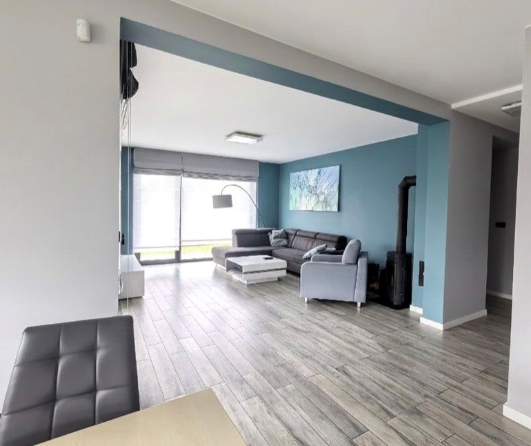 Dom wybudowany w 2018 roku, wykończony w wysokim standardzie, sprzedawany w pełni umeblowany i gotowy do zamieszkania. Funkcjonalny układ pomieszczeń zapewnia wygodę zarówno dla dużej rodziny, jak i osób pracujących zdalnie.