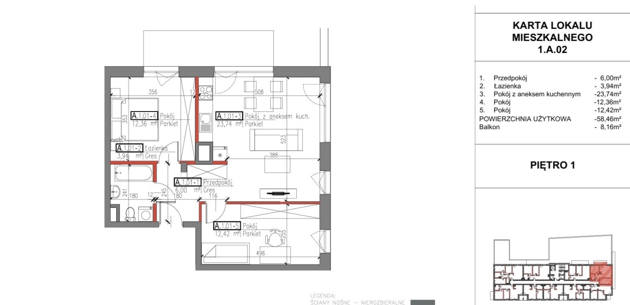 | Powierzchnia użytkowa [m2] | 58,46 m² |